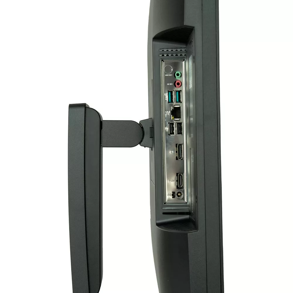 Right: 1x USB 3.2 Gen1, 1x USB 3.2 Gen1 Type-C Bottom: Line in/out, 2x USB 3.2 Gen1 Type-A, 2x USB 2.0, HDMI 2.1, Display Port 1.4, RJ-45, DC-in |